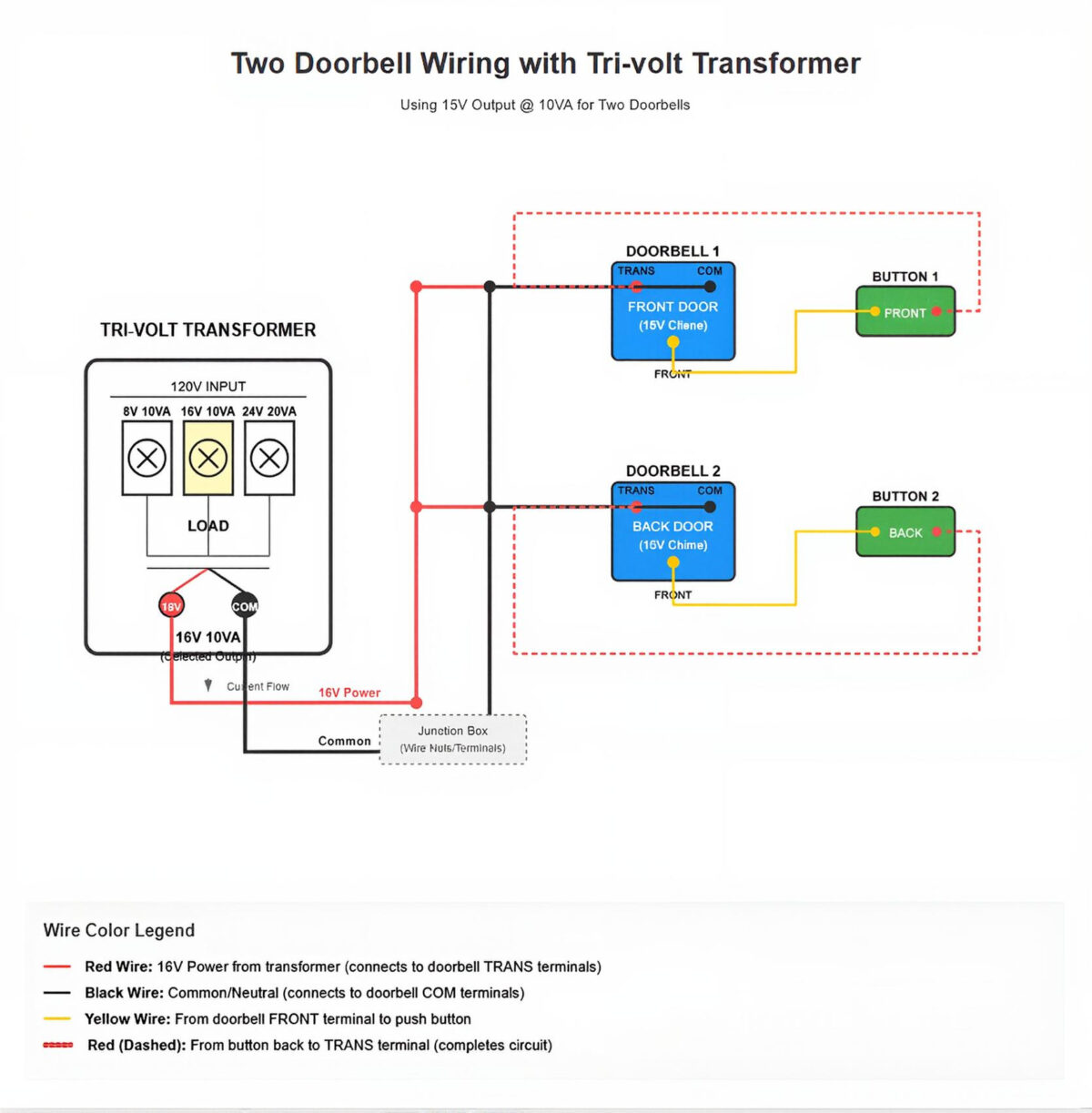- Two typical doorbells (5VA each) = 10VA total, which is perfect for the 16V 10VA tap